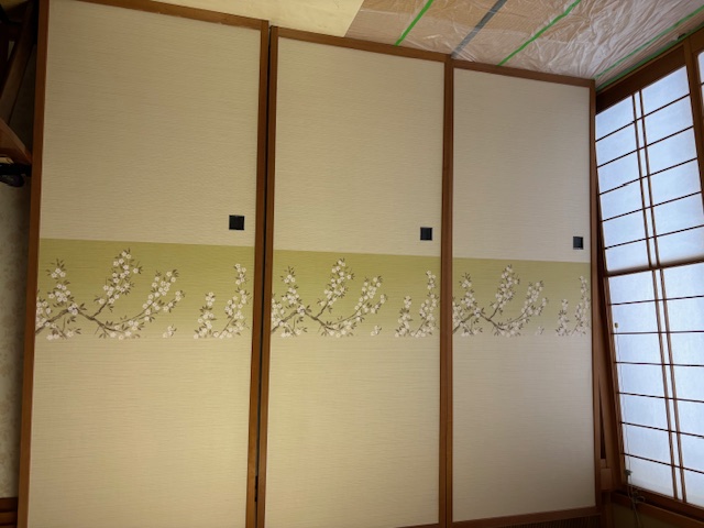家中の襖を貼替えました。無地物ばかりだった反動で今度は様々な柄物の材料を選ばれました。 部屋毎違い表と裏も別の柄物です。 続き柄も色々で間違わないように慎重に。 (2025.8.23[Sat])