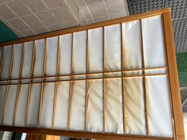温暖化の影響で夏の日差しにも負けないように、丈夫な材料で貼替するお客様が今は多いです。54枚もの障子全部の貼替依頼を受けました。障子戸が多いのは弊社は嬉しいですね。障子は暖かいんですよ。丈夫な材料で真っ白になり一安心の笑顔のお客様です。 (写真はプラスチックの差し込み式の物です。)